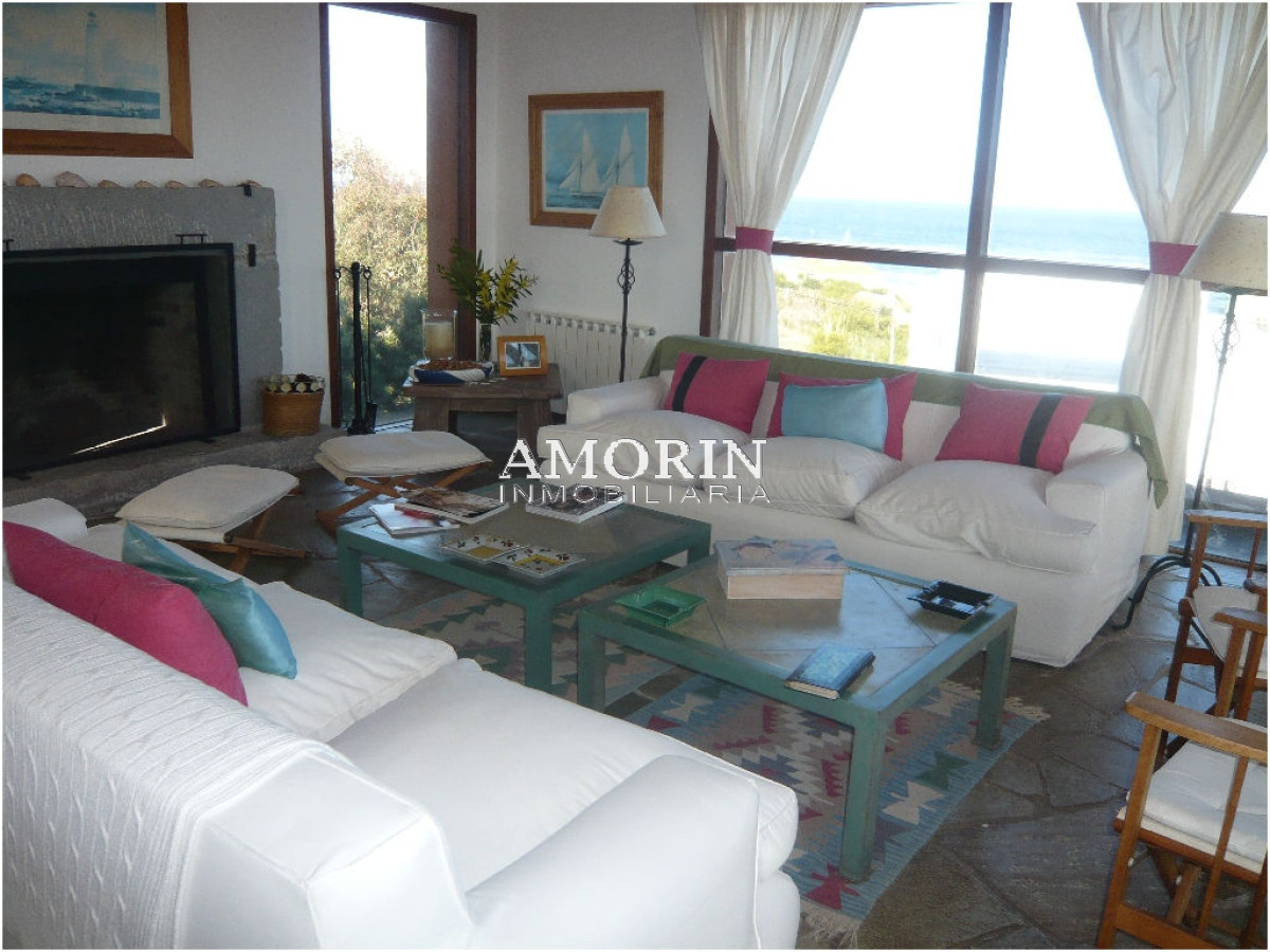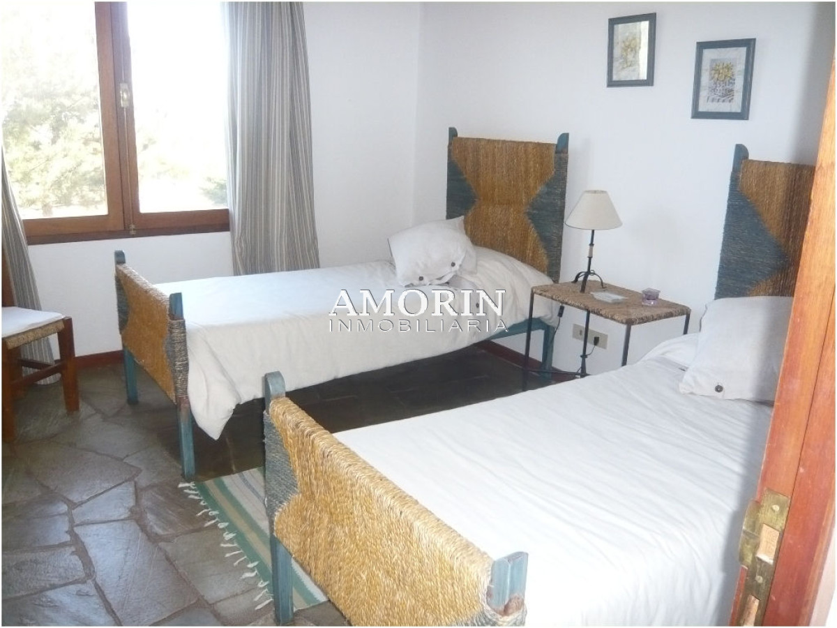 EXCELENTE CASA CON DISE?O QUE APROVECHA AL M?XIMO LAS VISTAS AL MAR QUE LA RODEAN. SE DISTRIBUYE EN DIFERENTES NIVELES. CONSTA DE 3 DORMITORIOS EN SUITE, (EL PRINCIPAL CON ESTUFA A LE?A Y VISTA AL MAR). SALA DE TV. Y LECTURA; COCINA CON OFFICE, COMEDOR PARA 12 PERSONAS, LIVING CON SALIDA A LA TERRAZA DESDE DONDE SE DISFRUTA UNA IMPRESIONANTE VISTA AL MAR Y A LOS ATARDECERES . DECK DE MADERA EN EL JARD?N, PILETA Y PARRILLERO CON GALER?A. DEPENDENCIA DE SERVICIO. AIRE ACONDICIONADO EN EL PLAYROOM.